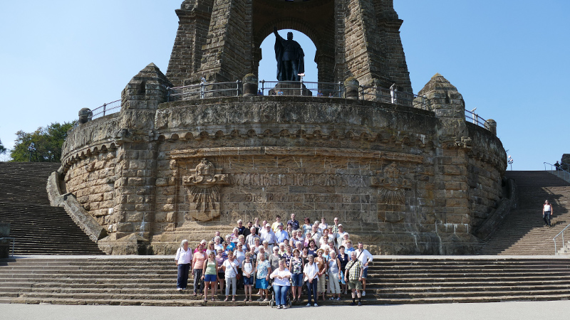 Bei einer Führung am Denkmal, das weithin sichtbar über dem Weserdurchbruch zwischen Weser- und Wiehengebirge aufragt, erfuhren die Ehrenamtlichen viel über die Geschichte des Kaisermonuments. Das Denkmal wurde von bis 1892 bis 1896 zu Ehren des Kaisers Wilhelm I. errichtet. Baumeister und Architekt war Bruno Schmitz, der auch das Kyffhäuserdenkmal und das Leipziger Völkerschlachtdenkmal entwarf. Als zweithöchstes Denkmal Deutschlands thront das Kaiser-Wilhelm-Denkmal 268 Meter hoch auf dem Wittekindsberg.