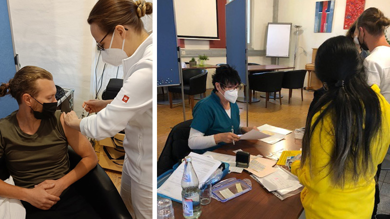 Bereits im Sommer 2021 hatte die Diakonie Stiftung Salem Impfaktionen für gehörlose Menschen organisiert. Ein wichtiges Angebot, wie Ralf Isermann, Gehörlosenberater bei der Diakonie Stiftung Salem, betont. Er weiß wie schwer es für gehörlose Menschen ist, einen Ansprechpartner für ihre Fragen zur Impfung zu finden. „Im Impfzentrum kommt man ohne Dolmetscher nicht weiter“, sagt Ralf Isermann. Und auch in den Hausarztpraxen ist die Kommunikation kompliziert. Dolmetscher würden zwar finanziert, seien aber schwer zu bekommen. Und so bleiben bei gehörlosen Menschen immer wieder Fragen offen. Diese Unsicherheit bemerkt Ralf Isermann auch in seinen Beratungen. Deshalb war es ihm wichtig eine Impfaktion zu organisieren, bei der gehörlose Menschen in geschütztem Rahmen und begleitet von Gebärdendolmetschern eine Impfung erhalten können.
