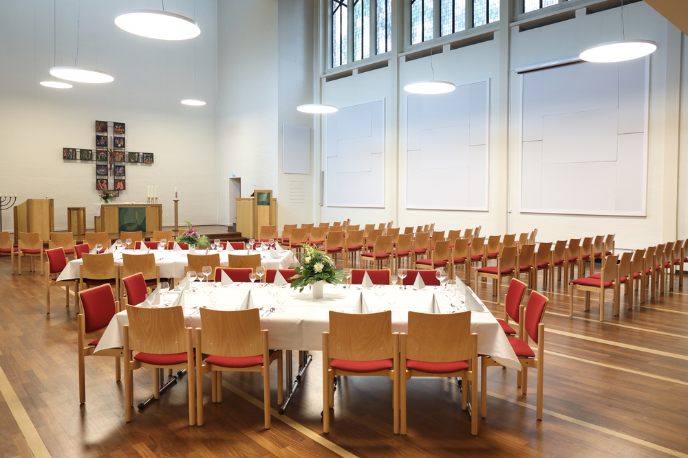 Besonders & multifunktional Die Auferstehungskirche bietet in besonderer Atmosphäre Platz für bis zu 199 Personen. Ob Konzert oder Theater, Vorträge oder Lesungen, Workshops oder Talkrunden: Mit ihren über 200 m² ist die Auferstehungskirche ein großzügiger Kreativraum, der sich für unterschiedliche Veranstaltungsformate eignet. Christliche Elemente verleihen diesem Veranstaltungsort eine besondere Wirkung, die auch in der Sakristei zu spüren ist. |